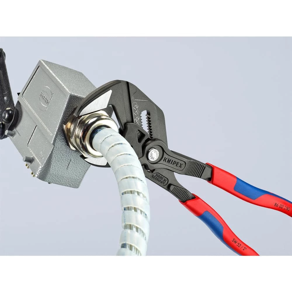 It’s finally here. Introducing the new KNIPEX 10 in. Pliers Wrench, now offered in a black finish. It has all the features you know and depend upon of the original pliers wrench along with new improvements such as being 15% lighter, an increased 2 in. jaw capacity, an increased 19 adjustment positions, a laser etched adjustment scale, a thinner jaw profile and an improved grip.