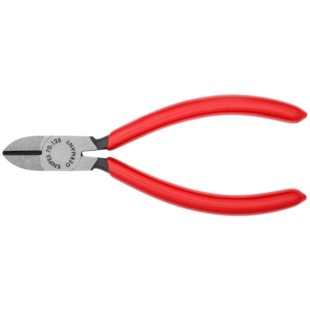 The KNIPEX Diagonal Cutters is great for all-round versatile use. Precision cutting edges for soft and hard wire from 1.2 mm to 3.0 mm. Clean cutting of thin copper wires, also at the cutting edge tips. Cutting edges additionally induction hardened, cutting edge hardness approximately 62 HRC. Narrow head style for use in confined areas. Made of vanadium electric steel forged, oil-hardened.