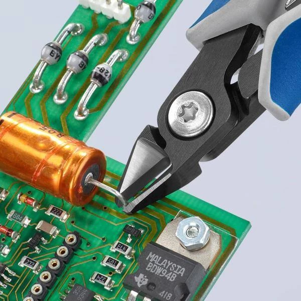 - Very precisely ground and sharp cutting edges with very small bevels for precise cutting work on small electronic components