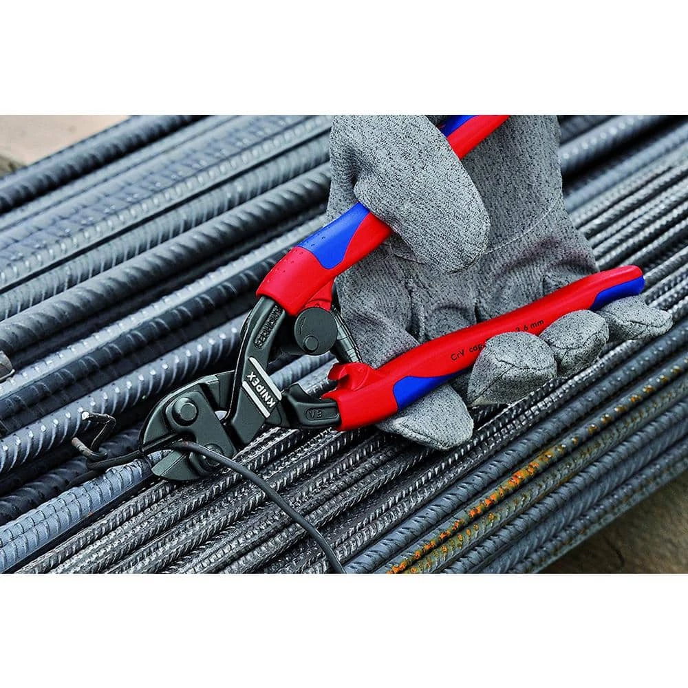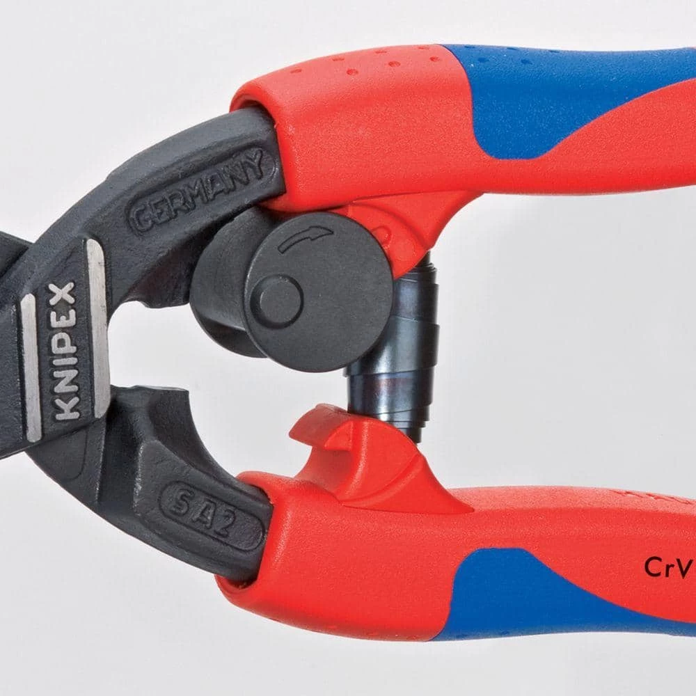 KNIPEX Tools is the worlds largest manufacturer of professional pliers since 1882. KNIPEX Pliers, Cutters, Insulated Tools and other products have been the tools of choice for Professional Tradesmen and end users who are serious about their hand tools and demand industrial quality. KNIPEX Tools are made from start to finish utilizing the highest quality materials. Based in Germany, KNIPEX Tools are German engineered to produce a tool unmatched in the industry in terms of features, comfort, design and performance. The KNIPEX Compact Bolt Cutter is ideal for any professional for a variety of cutting applications. The newly designed lever action mechanism guarantees an heavy duty lever ratio with low friction. The cutting performance is 20 times higher than the handforce applied.
