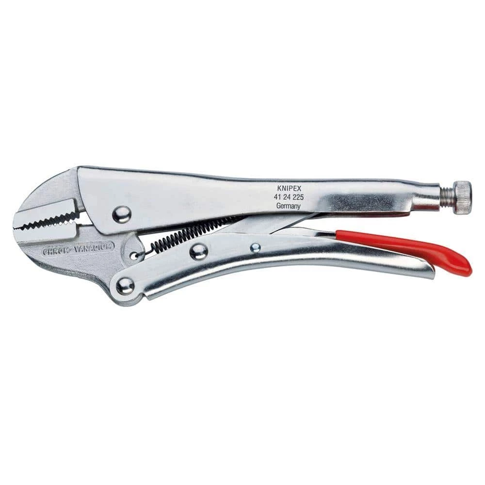 The KNIPEX Gripping Pliers tightly holds flat material due to the straight, flat jaws. The adjustment screw and release lever allow for easy on, easy off 1-hand operation. High clamping pressure due to toggle lever action. Pliers body is made of rolled steel, high-strength. The gripping jaws are chrome vanadium electric steel, forged.