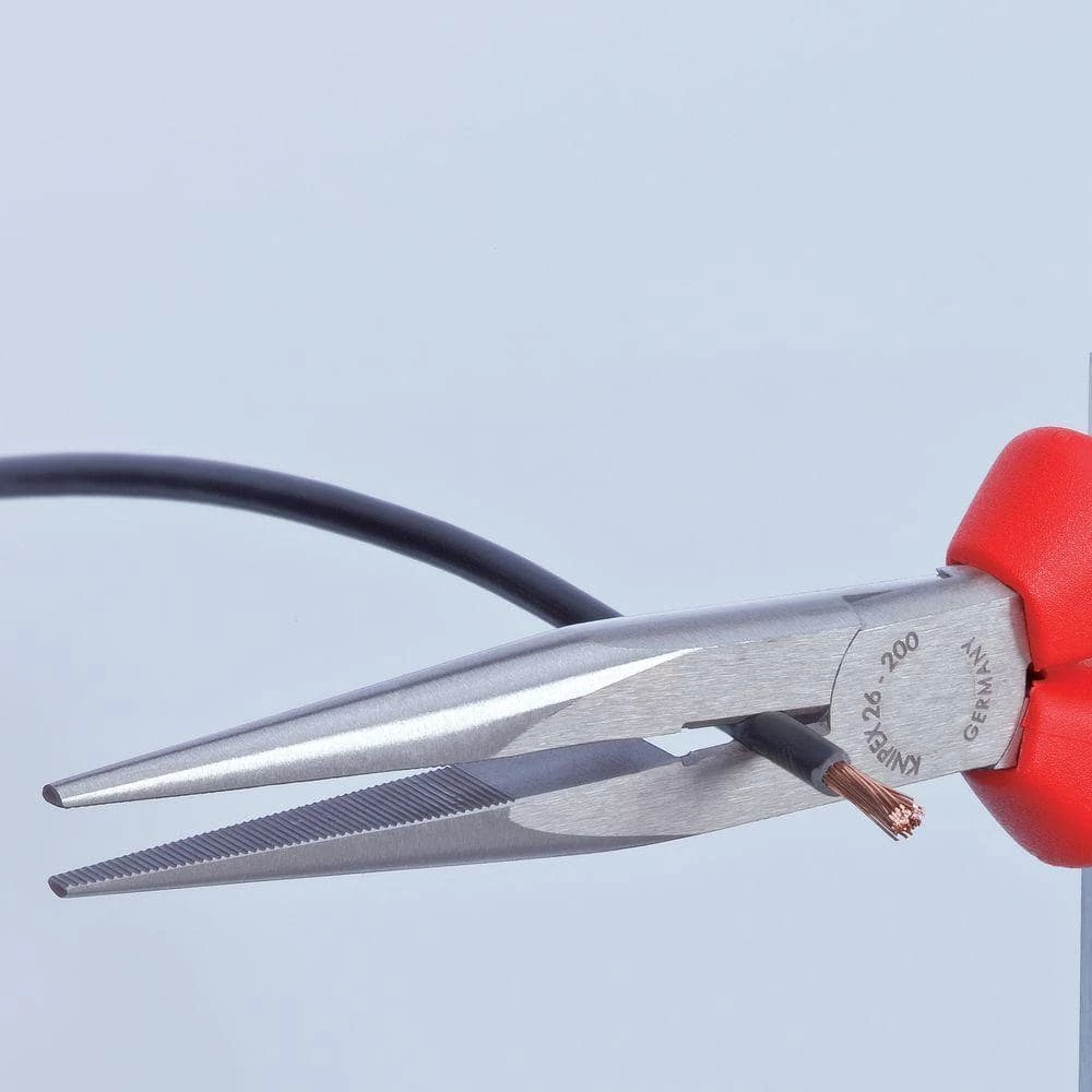 Knipex Tools is the worlds largest manufacturer of professional pliers since 1882. Knipex Pliers, Cutters, Insulated Tools and other products have been the tools of choice for Professional Tradesmen and end users who are serious about their hand tools and demand industrial quality. Knipex Tools are made from start to finish utilizing the highest quality materials. Based in Germany, KNIPEX Tools are German engineered to produce a tool unmatched in the industry in terms of features, comfort, design and performance. KNIPEX Long Nose Side Cutting Pliers (Stork Beak Pliers) are forged from Vanadium steel and carefully hardened. The slim precision tips withstand high demands, particularly bending loads.
