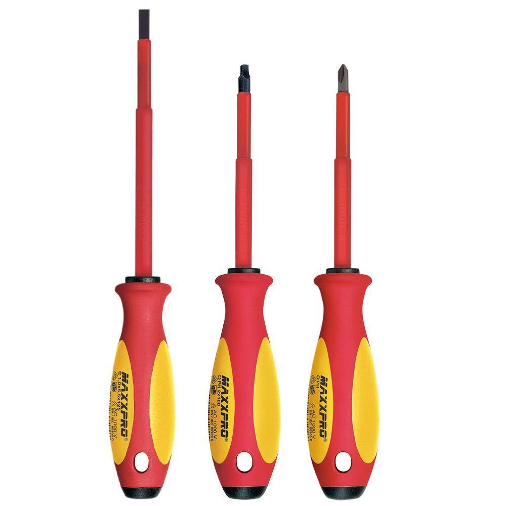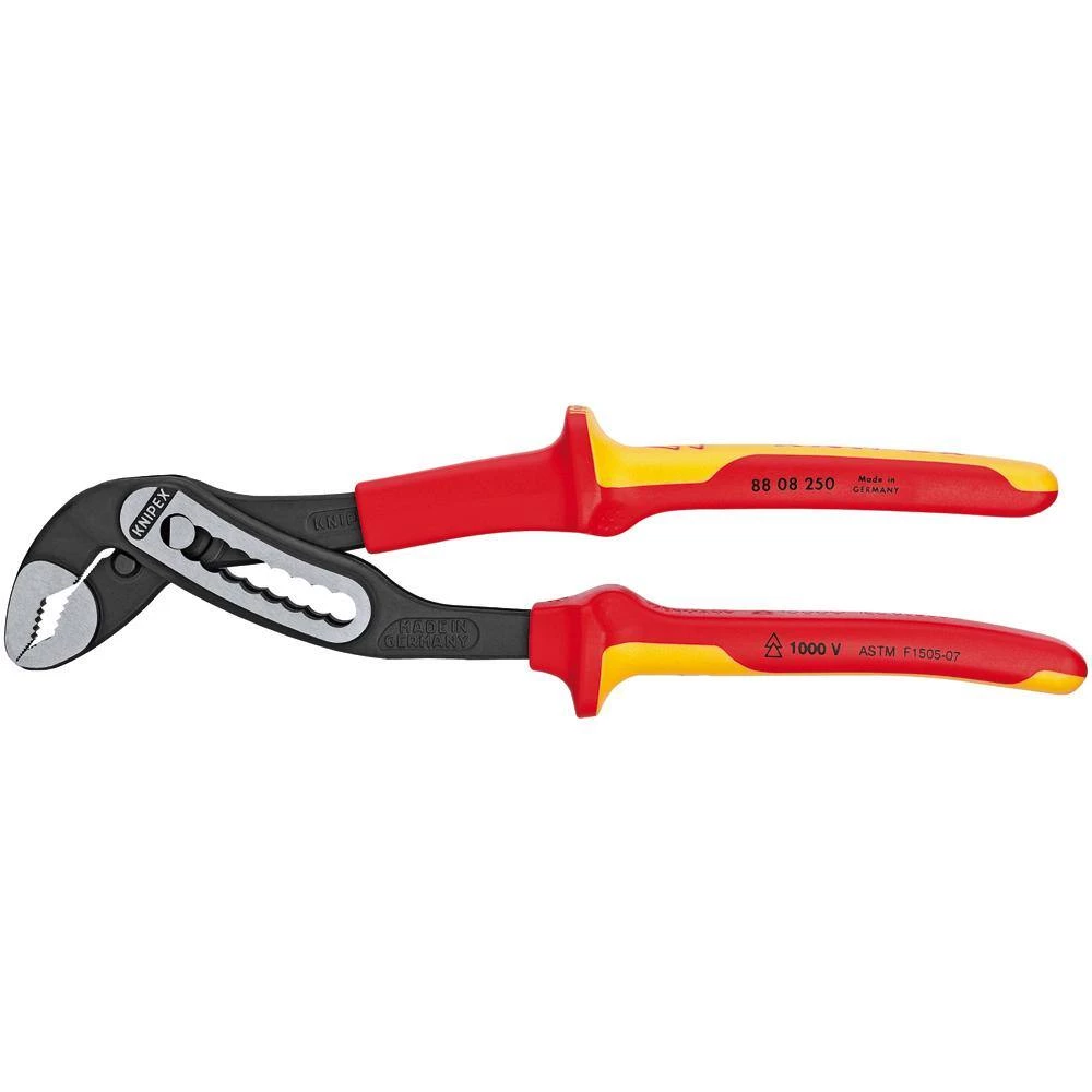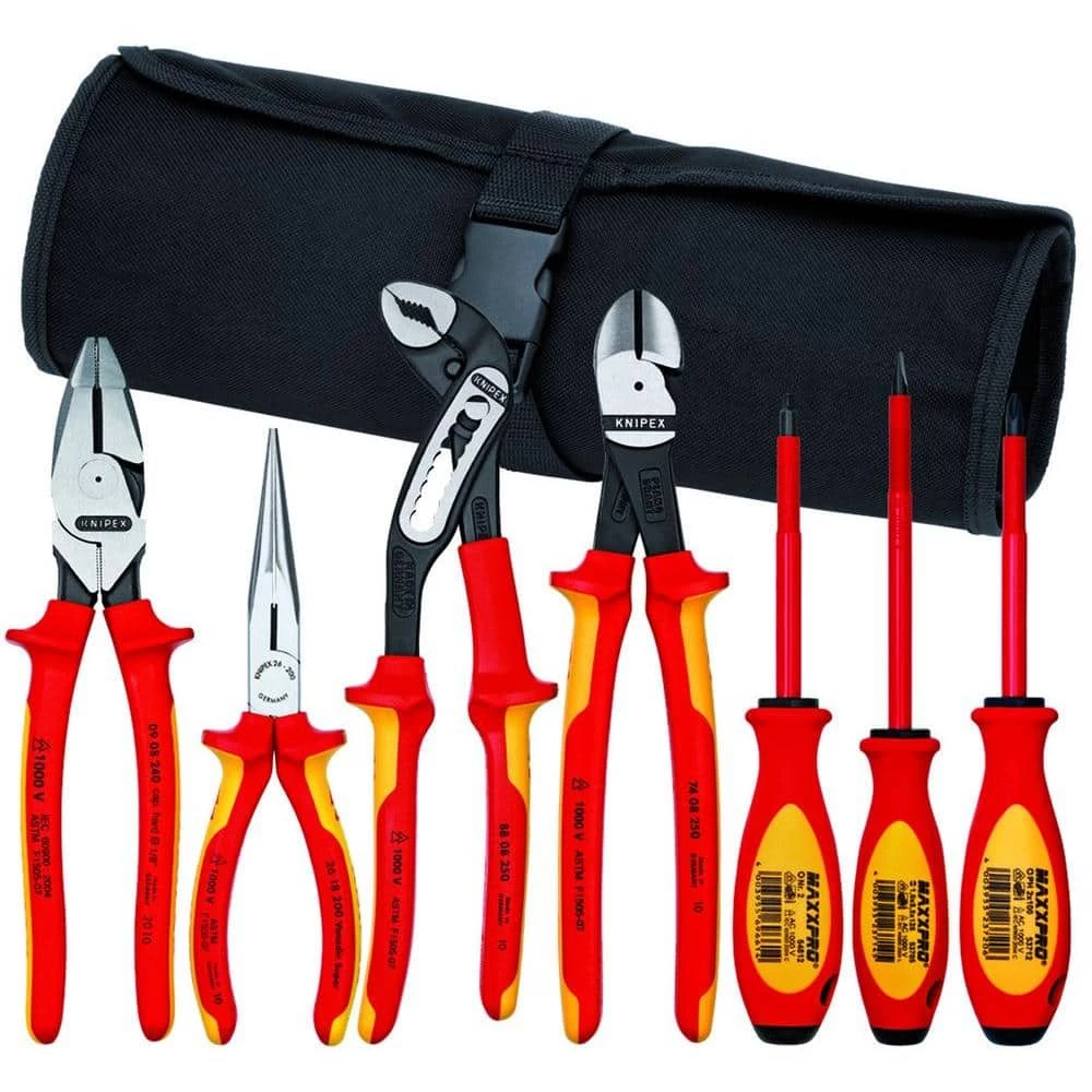 The KNIPEX 7-Piece 1,000-Volt Insulated Tool Set meets the needs of demanding trade professionals. The set contains 8 in. high leverage diagonals, 10 in. Alligator pump Pliers, 8 in. long nose Pliers, 9 in. high leverage combination Pliers, 7/32 in. x 5 in. slotted screwdrivers, #2 x 4 in. Phillips screwdriver and #2 x 5 in. square head. A roll-up ballistic pouch is included. All tools meet or exceed ASTM, IEC and VDE specifications for 1000-Volt.